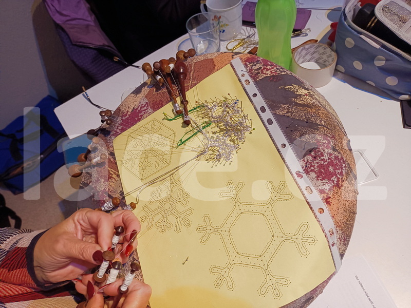O víkendu 25. a 26. října 2025 jsme s krajkářkami z okolí Myjavy paličkovaly zbrusu nové Sněhové vločky.