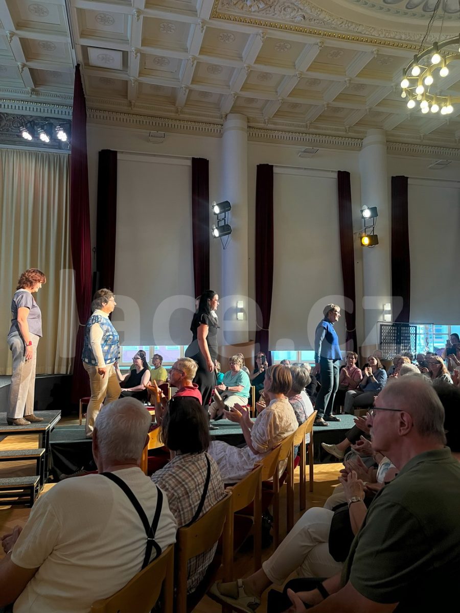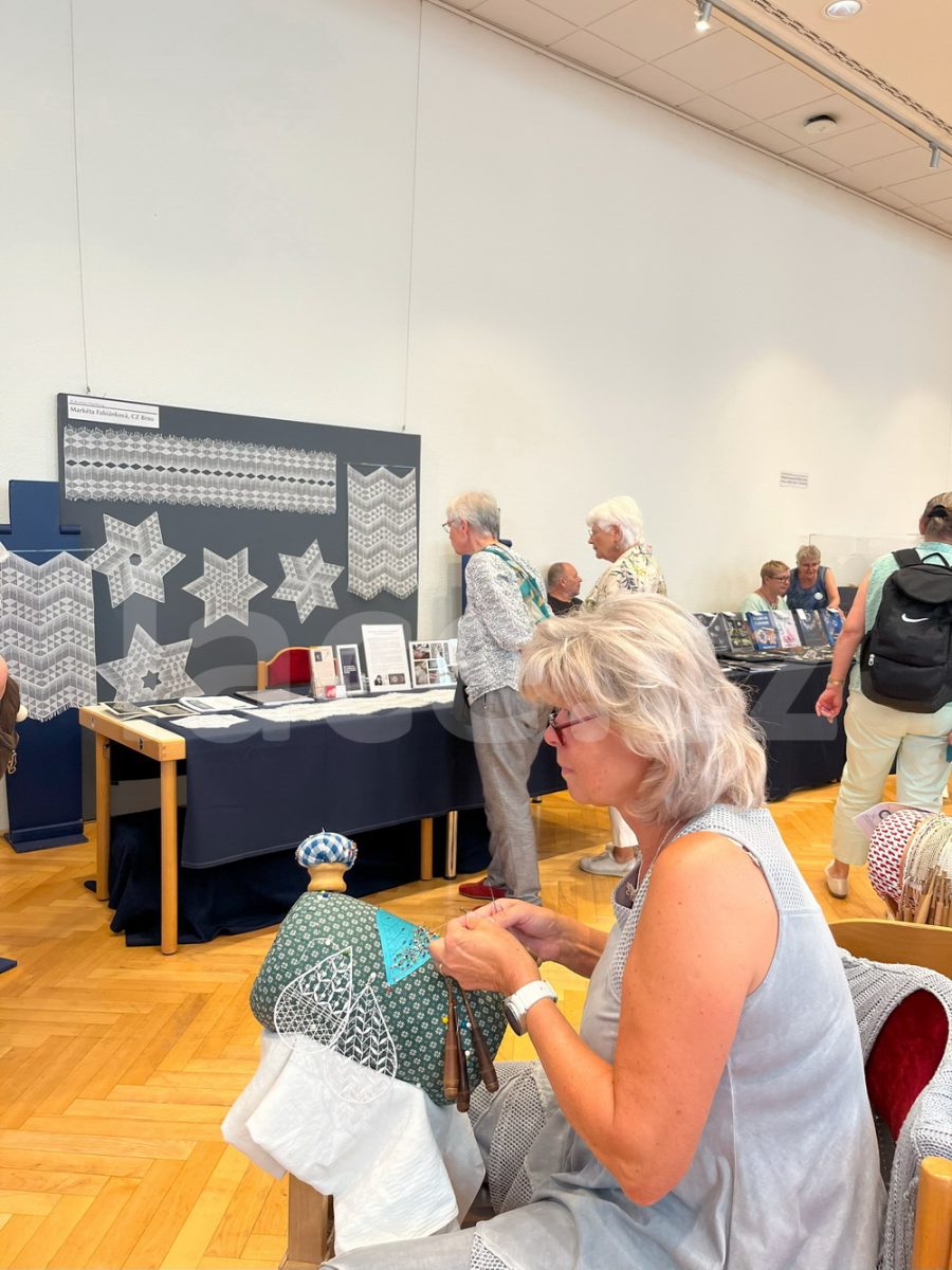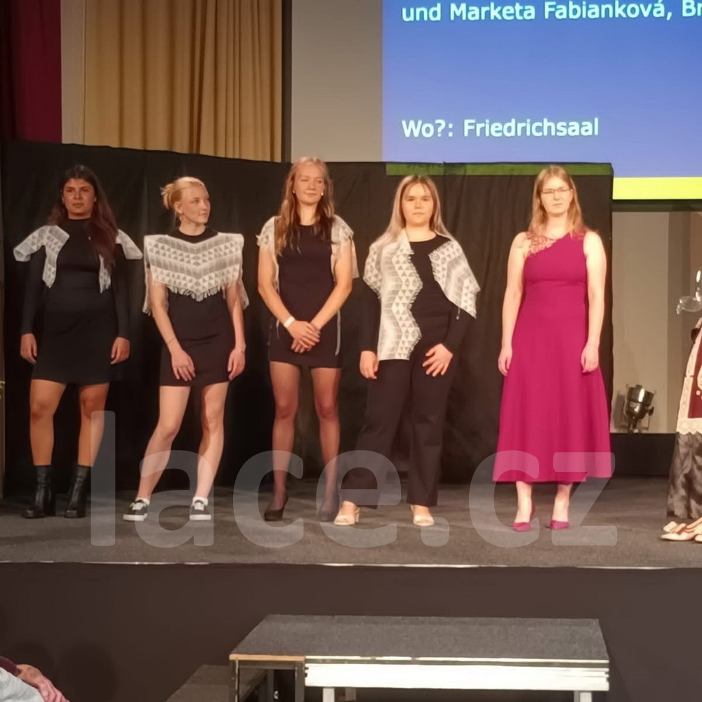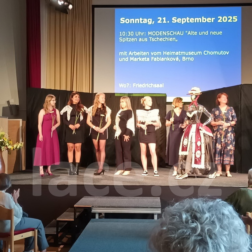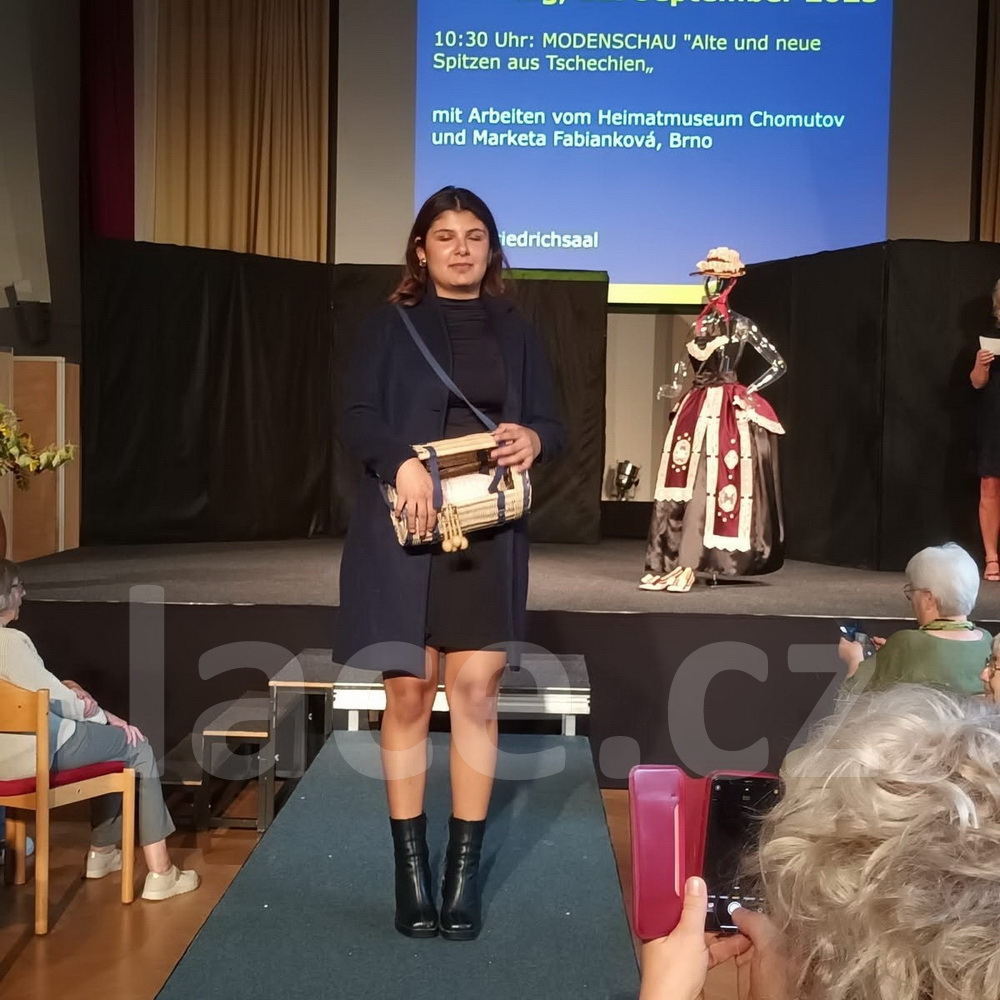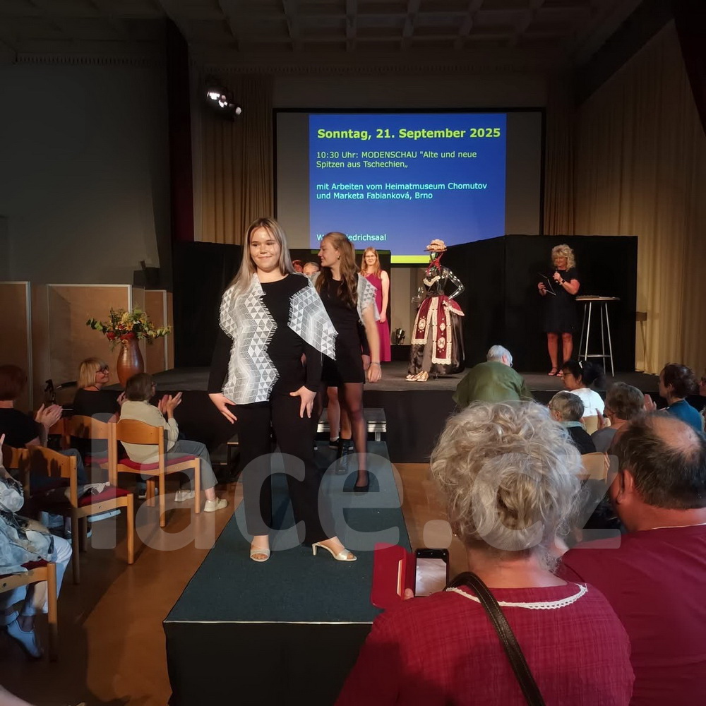 Markéta pokračovala ve své spanilé jízdě ještě i v září, kdy naše krajky vyvezla na výstavu do německého města Annaberg-Buchholz. Vystavila je na svém stánku, ale prezentovala je i během módní přehlídky.