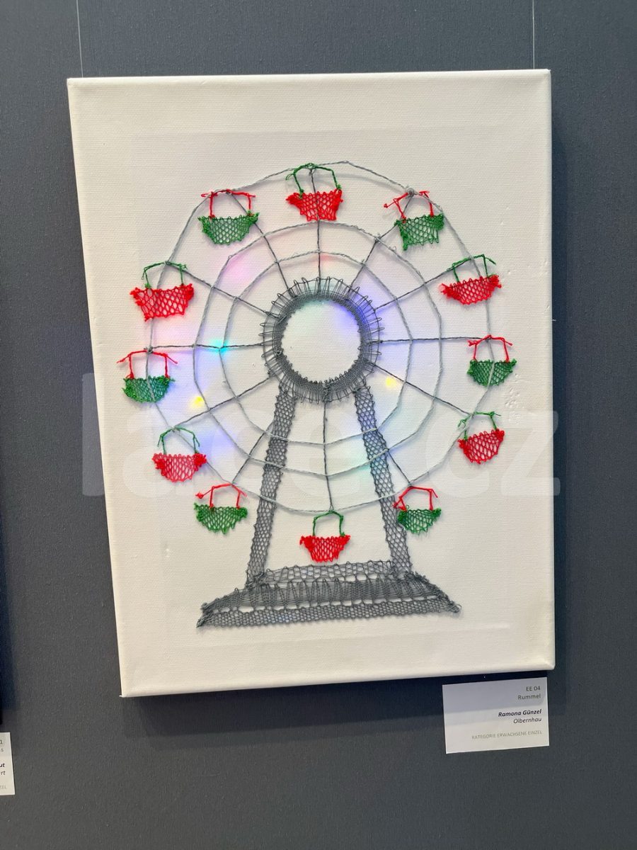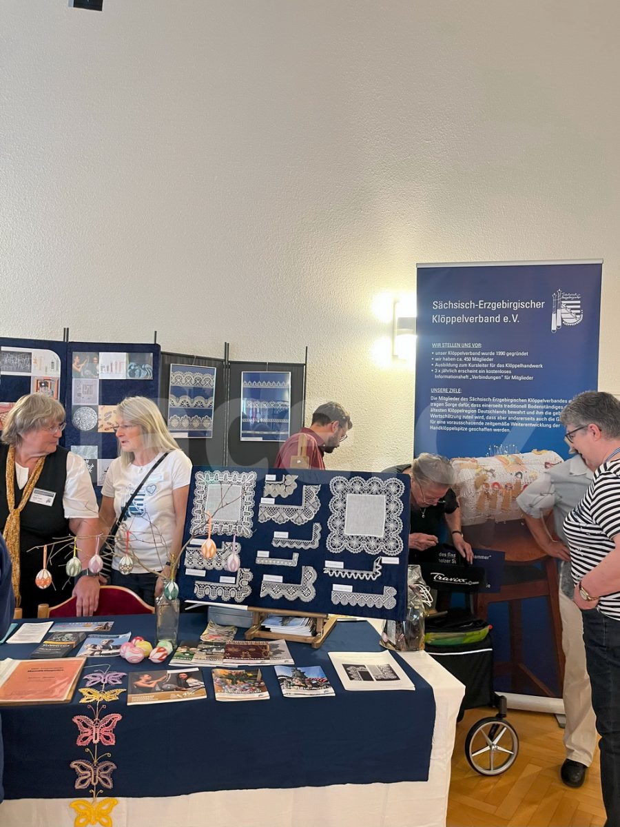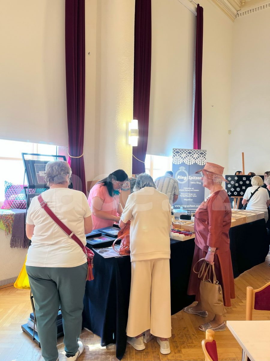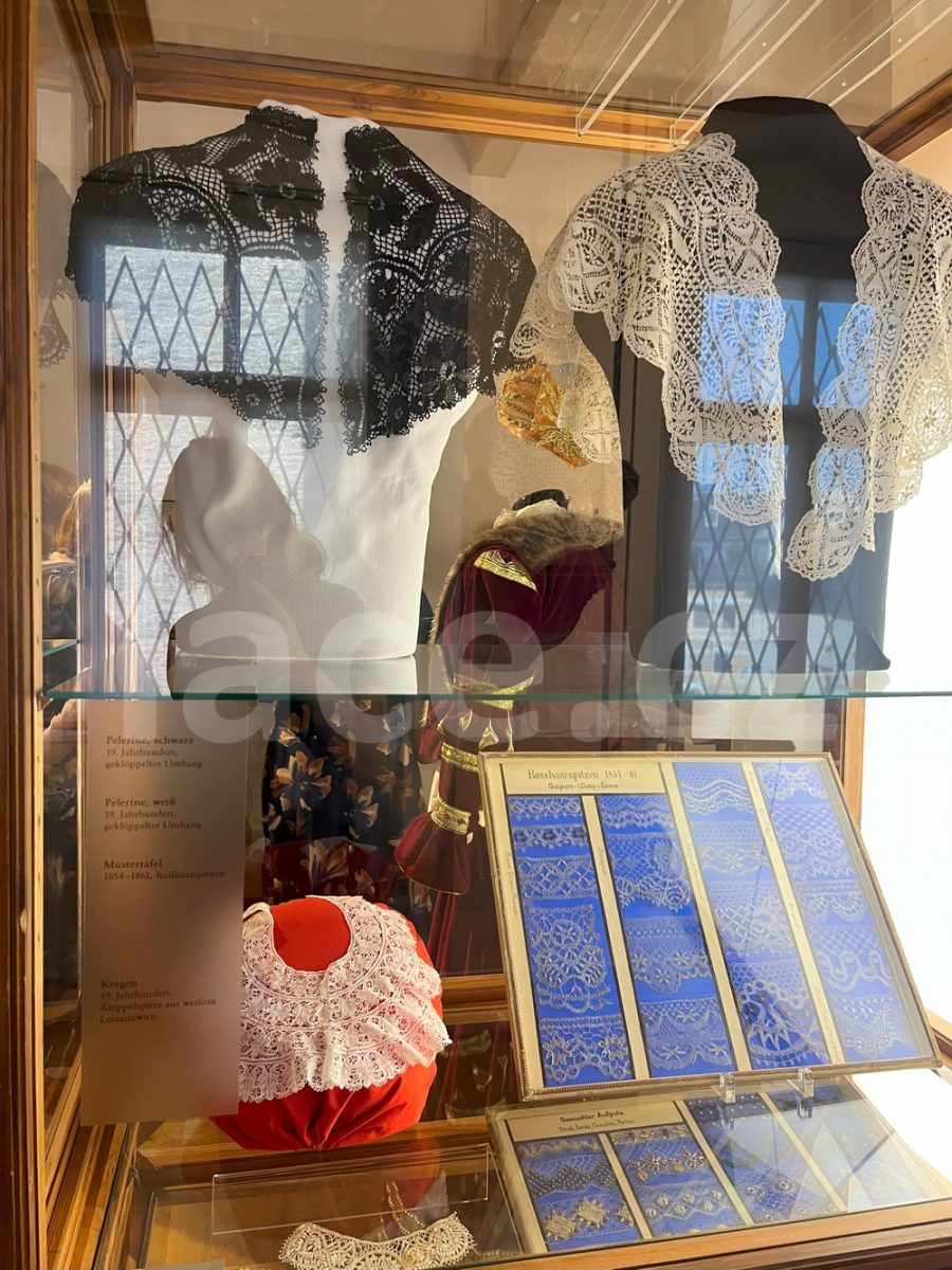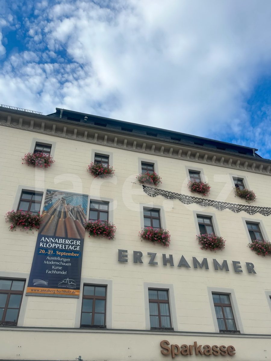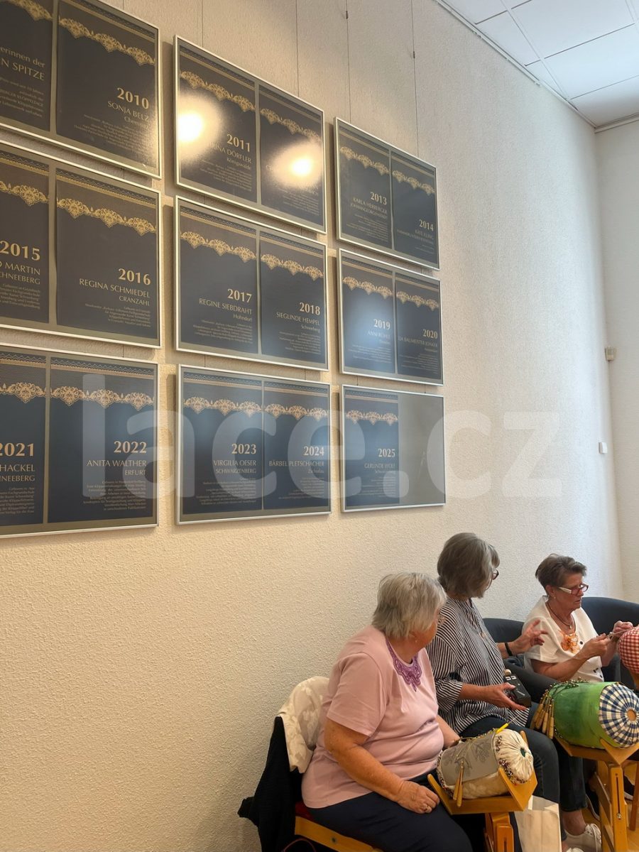 Markéta pokračovala ve své spanilé jízdě ještě i v září, kdy naše krajky vyvezla na výstavu do německého města Annaberg-Buchholz. Vystavila je na svém stánku, ale prezentovala je i během módní přehlídky.