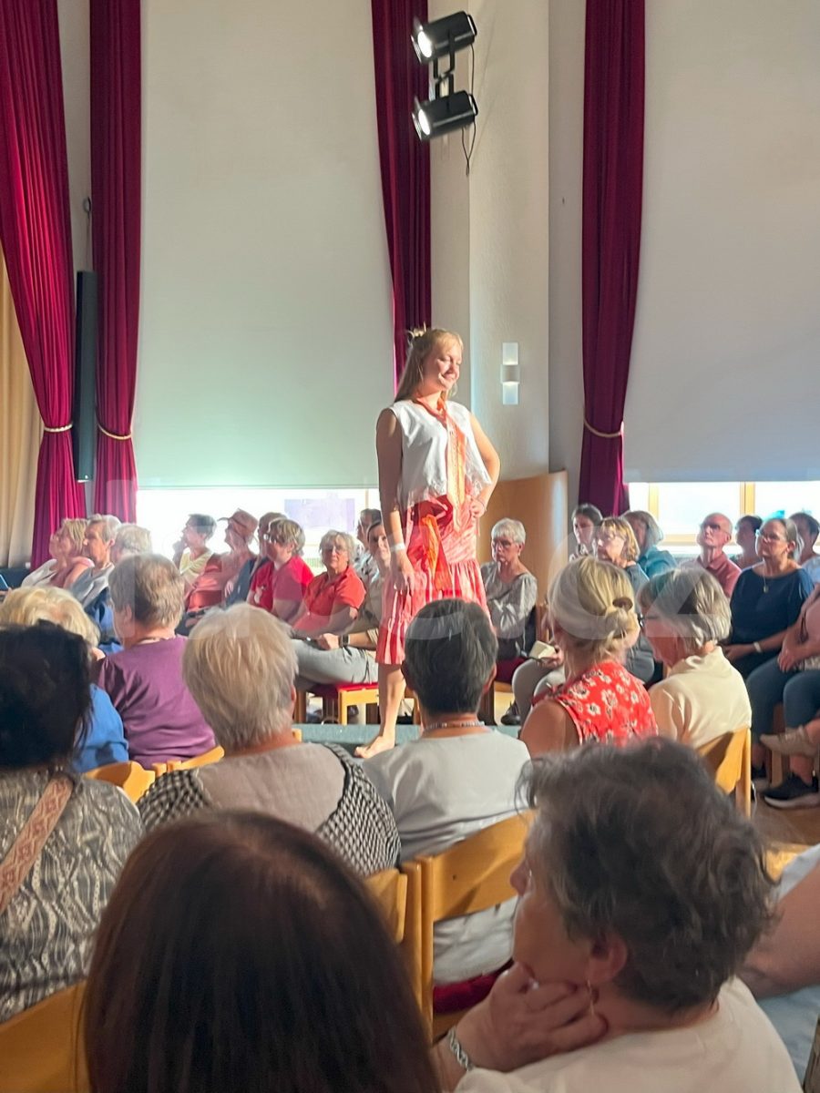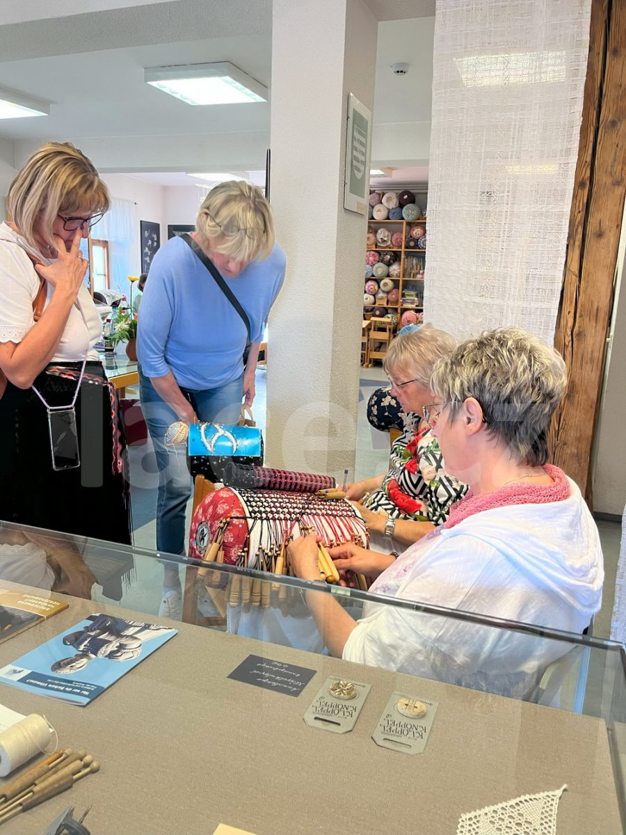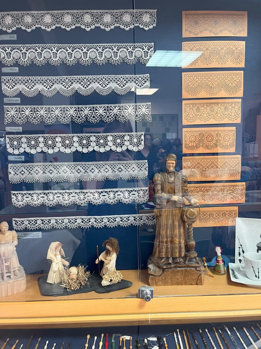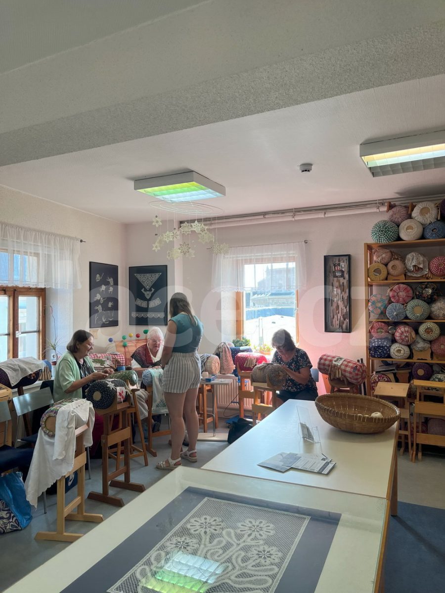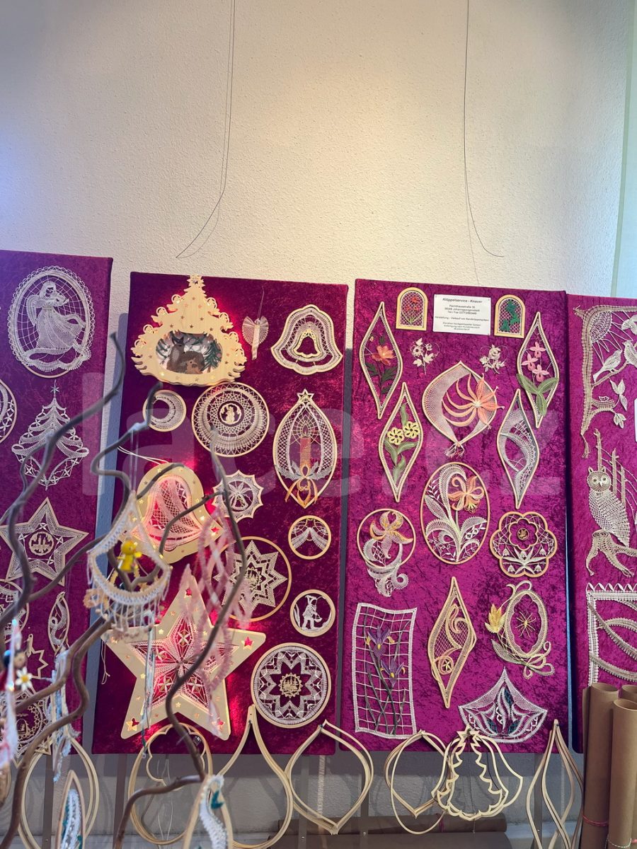 Markéta pokračovala ve své spanilé jízdě ještě i v září, kdy naše krajky vyvezla na výstavu do německého města Annaberg-Buchholz. Vystavila je na svém stánku, ale prezentovala je i během módní přehlídky.
