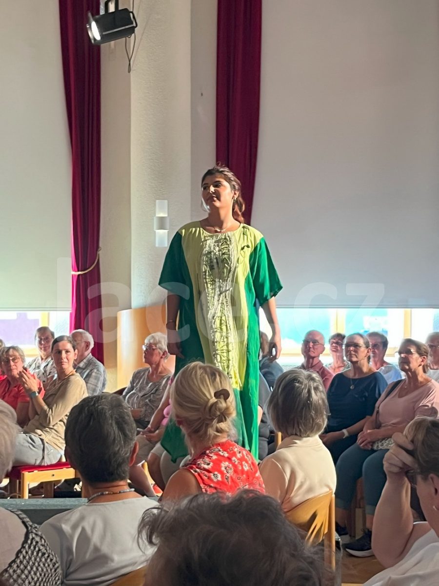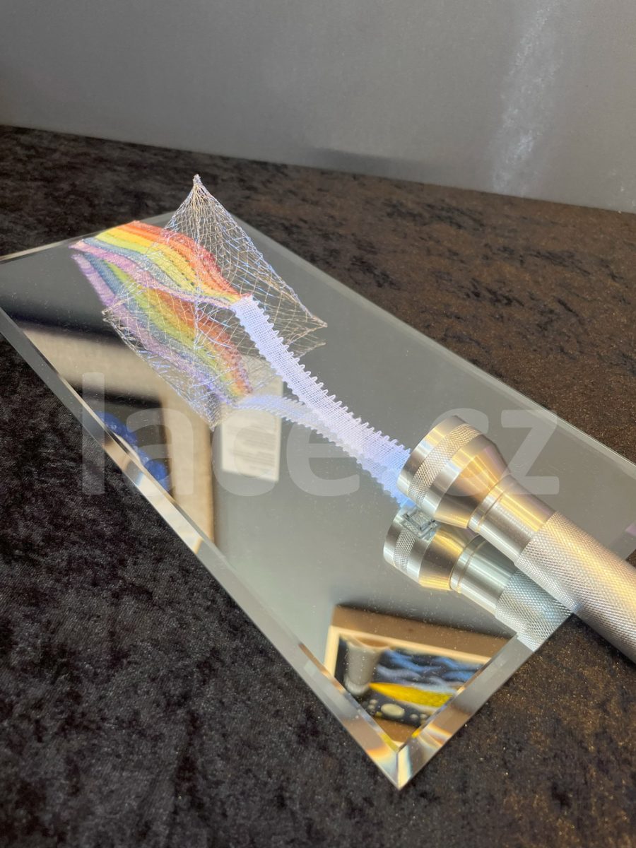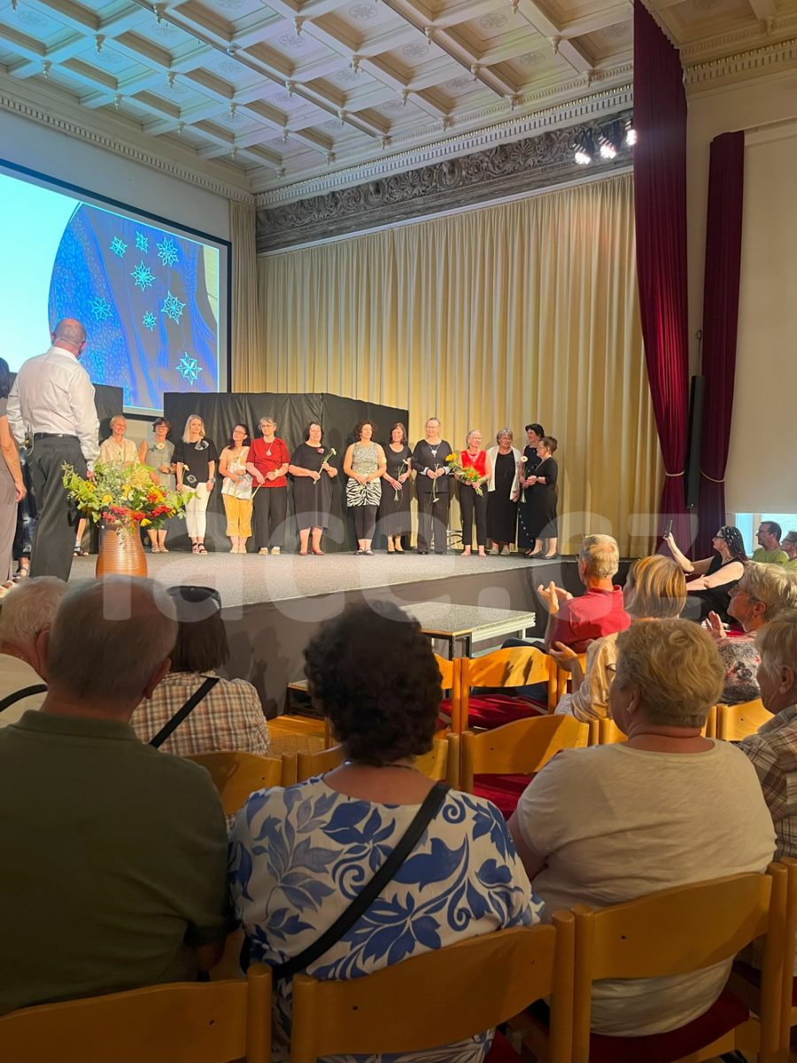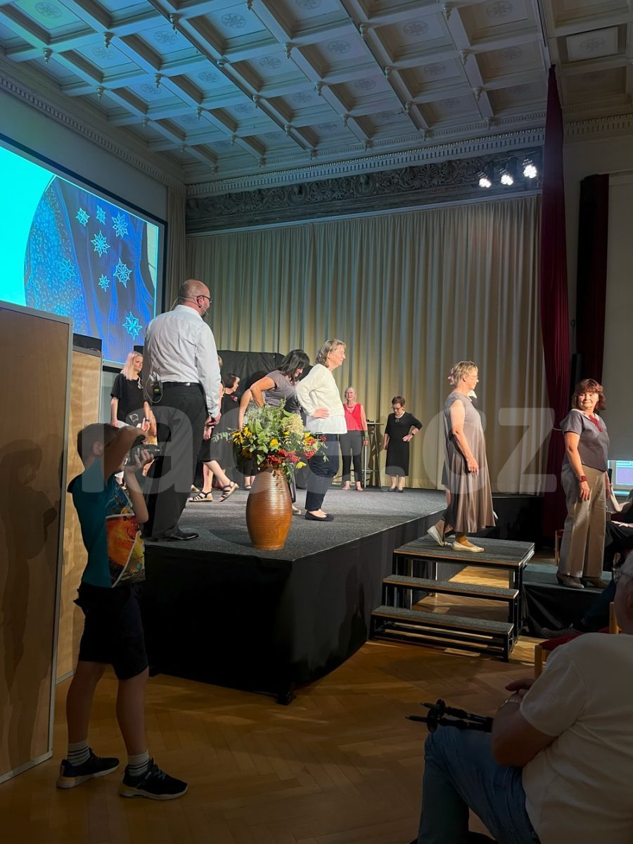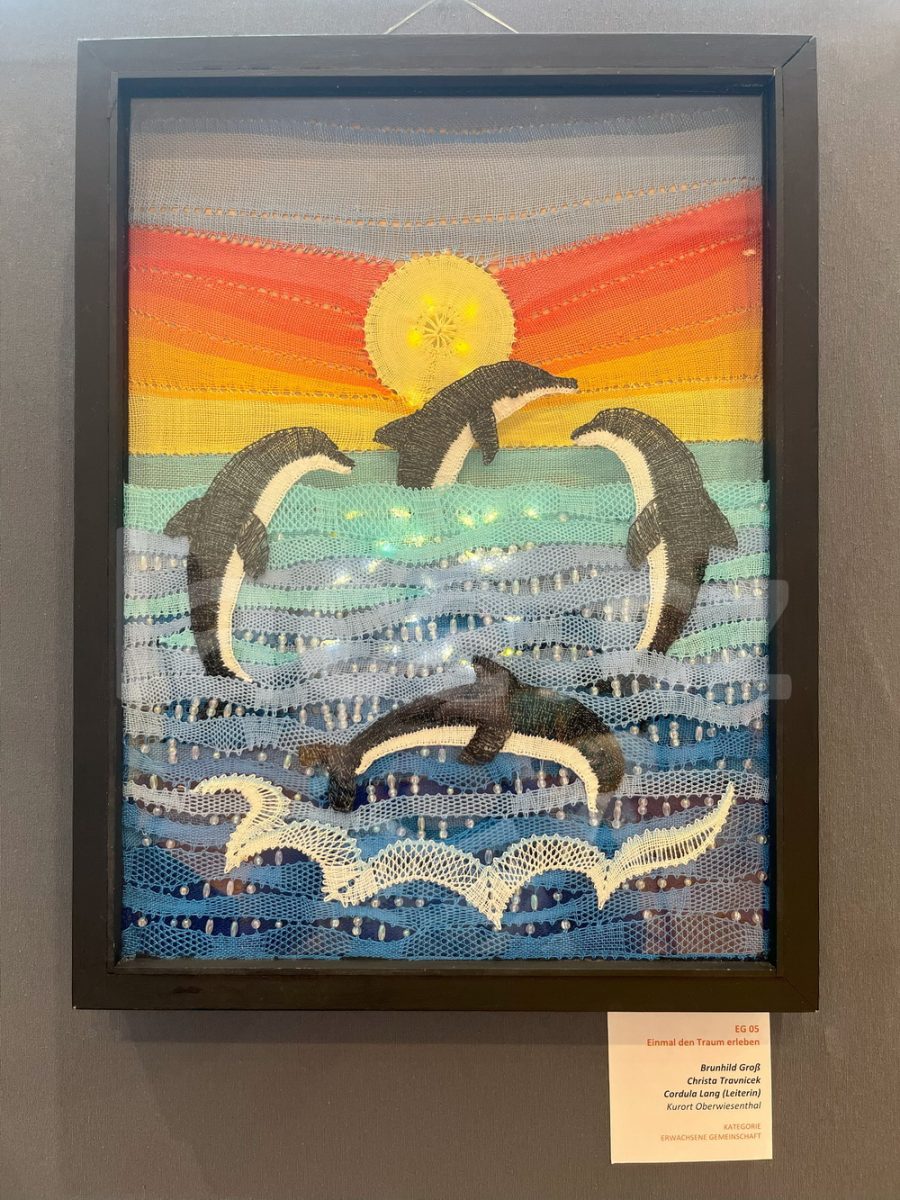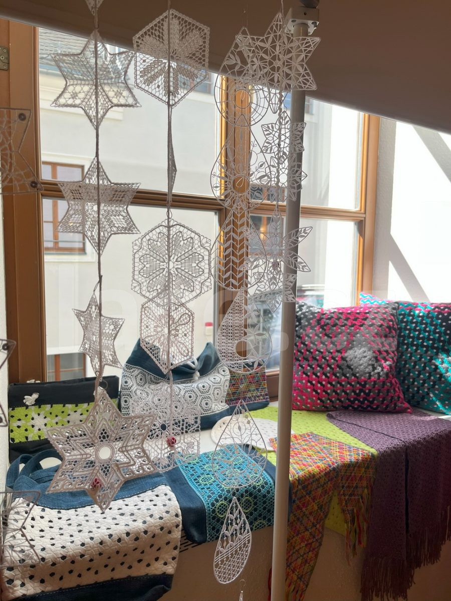 Markéta pokračovala ve své spanilé jízdě ještě i v září, kdy naše krajky vyvezla na výstavu do německého města Annaberg-Buchholz. Vystavila je na svém stánku, ale prezentovala je i během módní přehlídky.