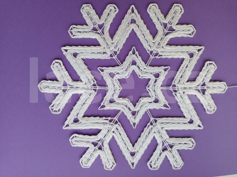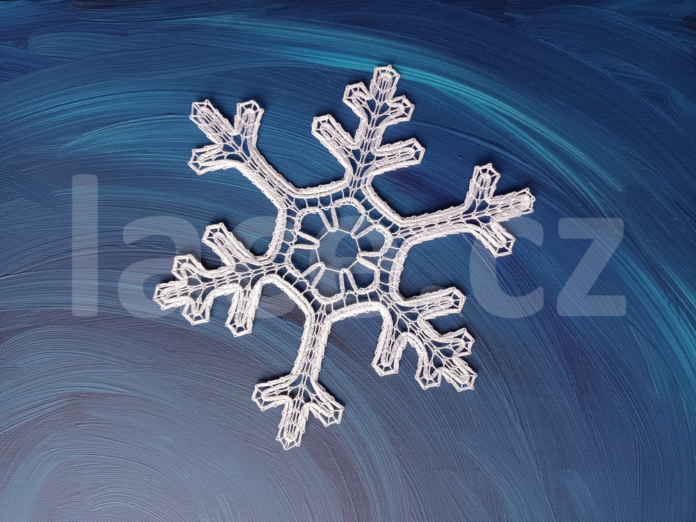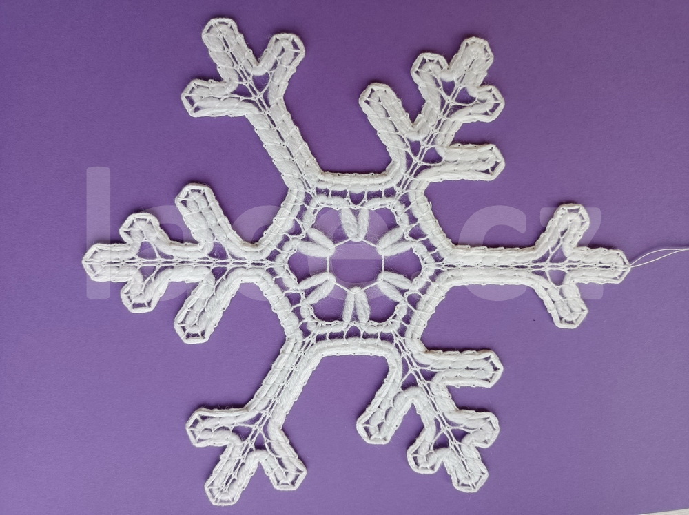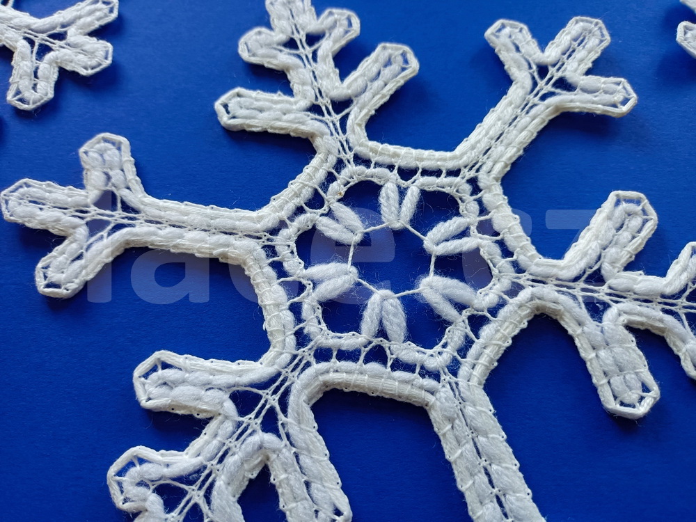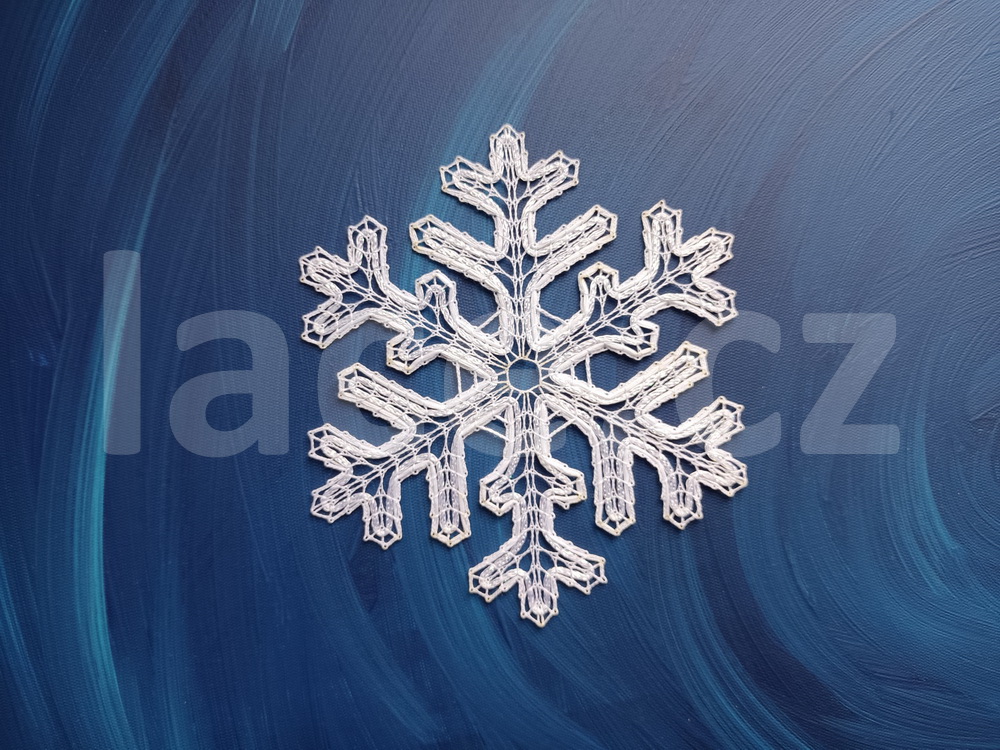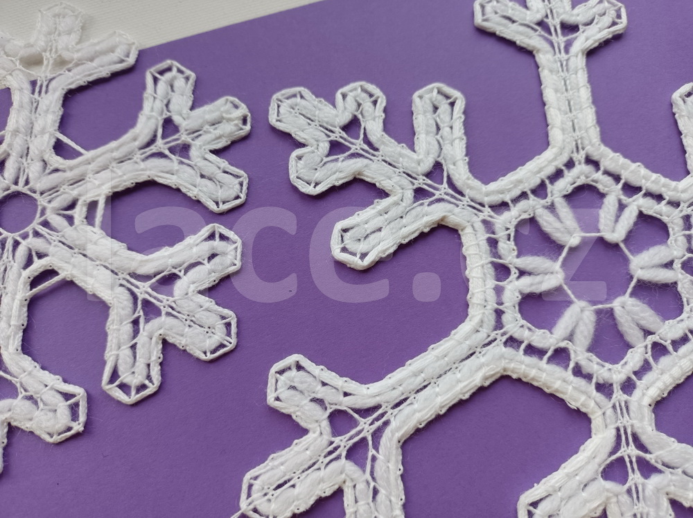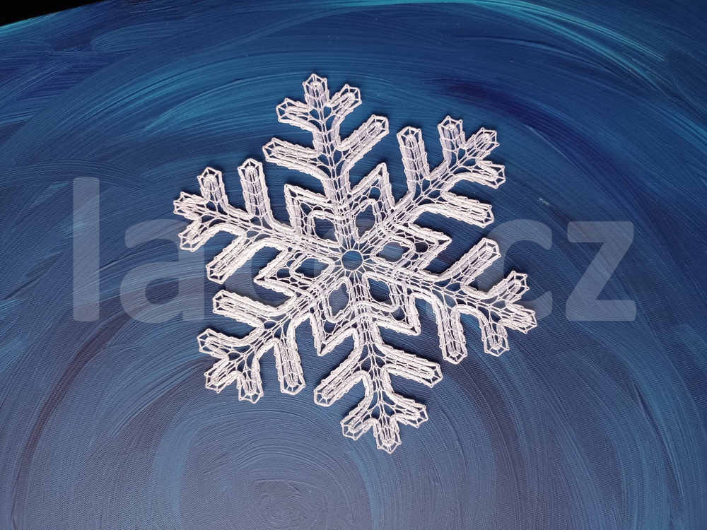 Soubor 12 podvinků pro paličkování sněhových vloček technikou vláčkové krajky. Velikost od 9,7 do 15,5 cm. Jsou upaličkované ze stejných nití jako předchozí řady Ledových krystalů, Ledových krystalů 2, Ledových květů a Minikrystalů, které hezky doplňují a rozšiřují, jak na stromečku, tak i v oknech apod.