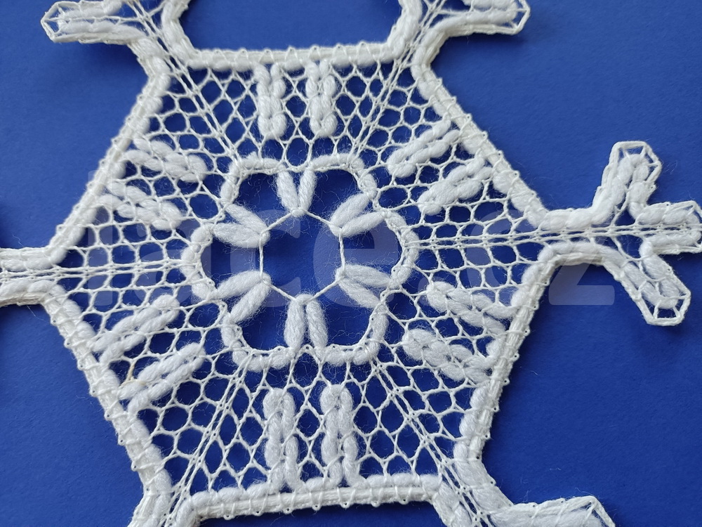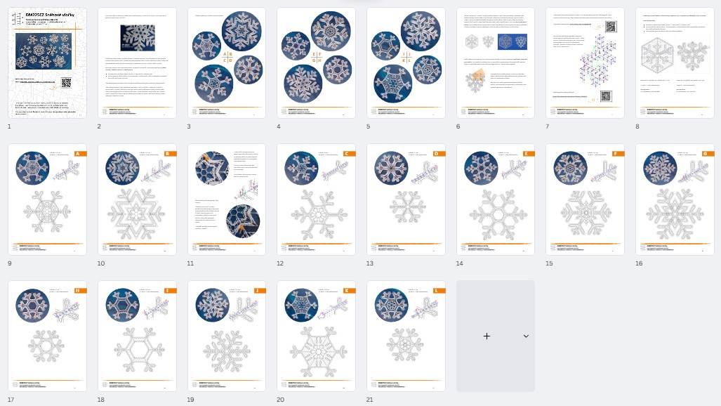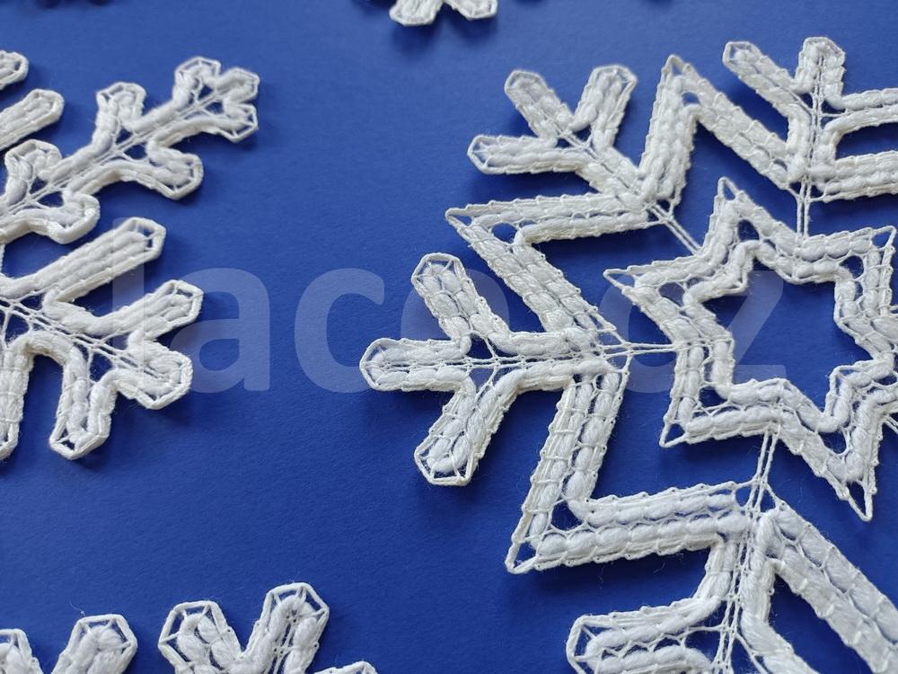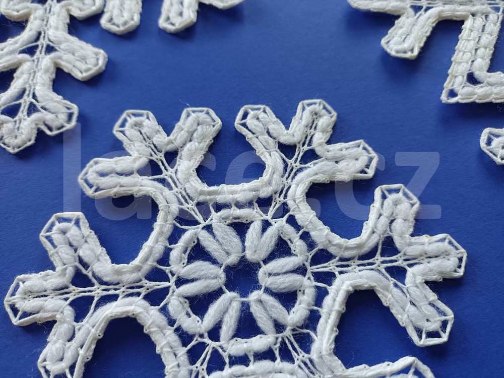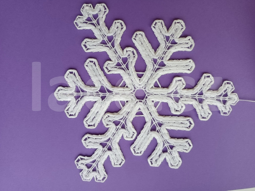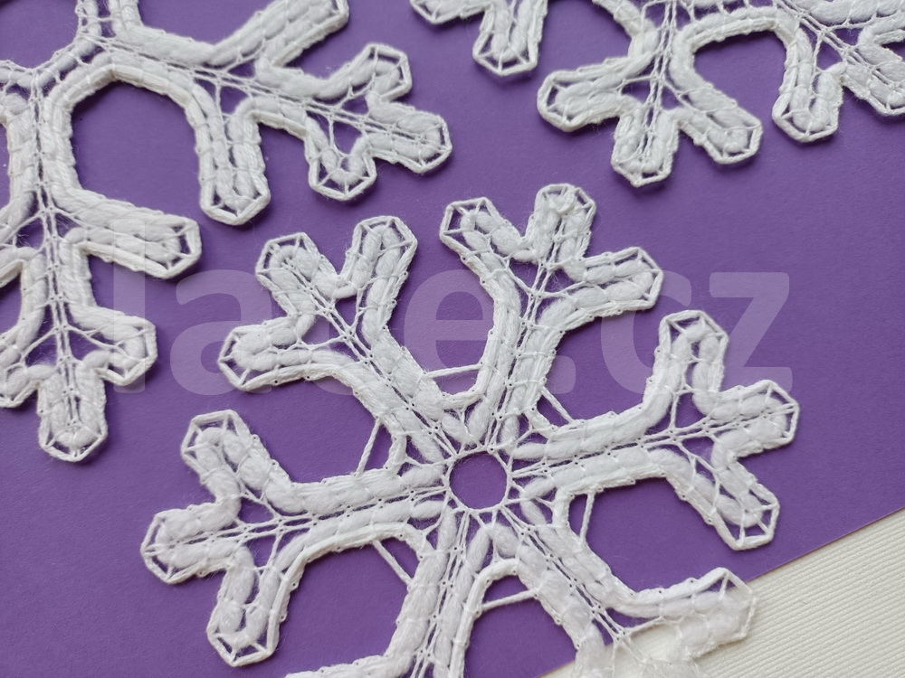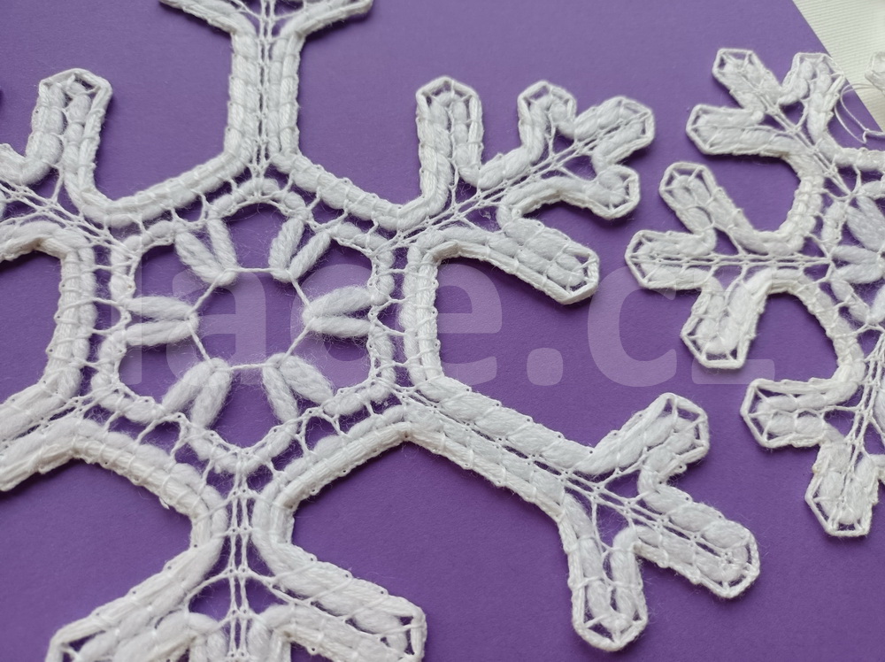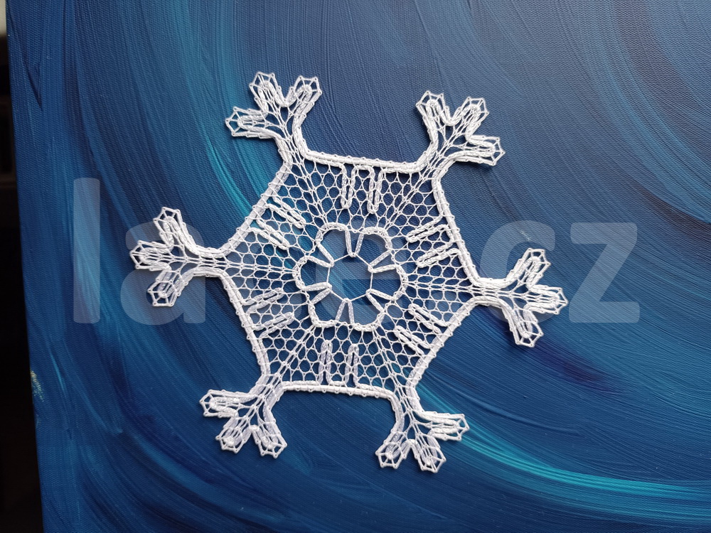 Soubor 12 podvinků pro paličkování sněhových vloček technikou vláčkové krajky. Velikost od 9,7 do 15,5 cm. Jsou upaličkované ze stejných nití jako předchozí řady Ledových krystalů, Ledových krystalů 2, Ledových květů a Minikrystalů, které hezky doplňují a rozšiřují, jak na stromečku, tak i v oknech apod.