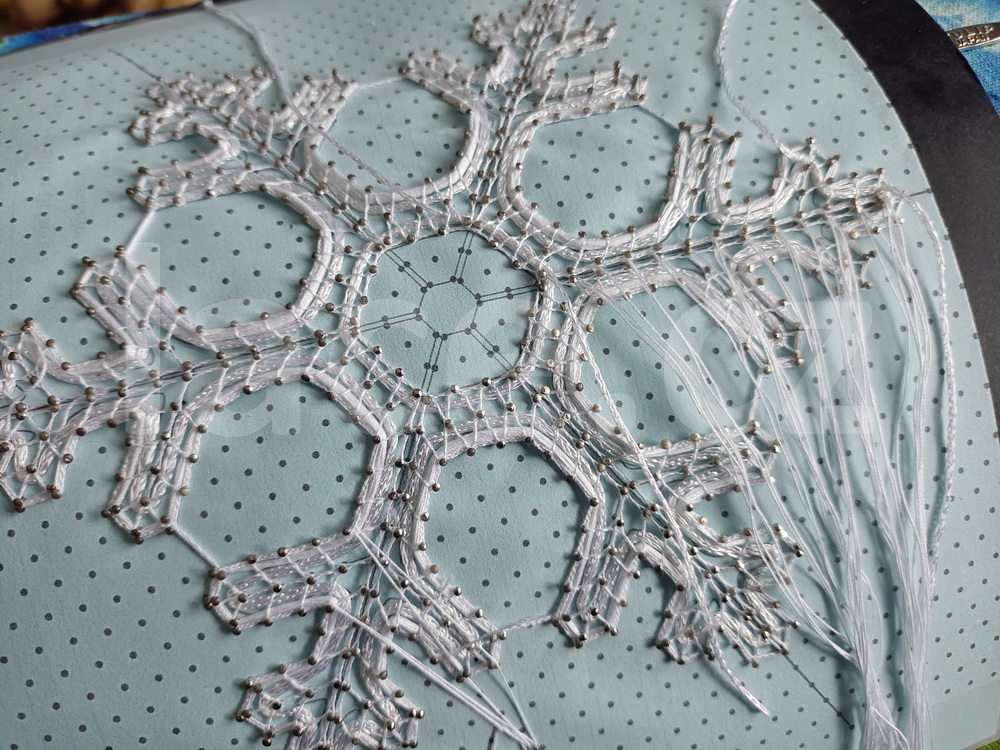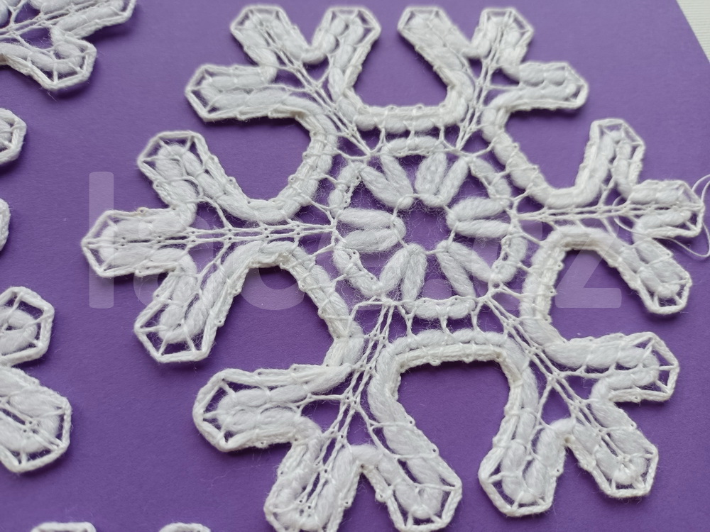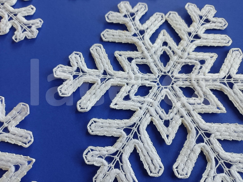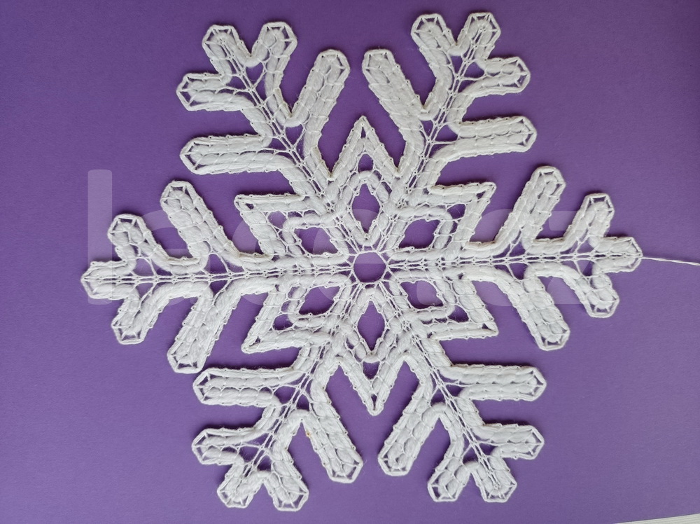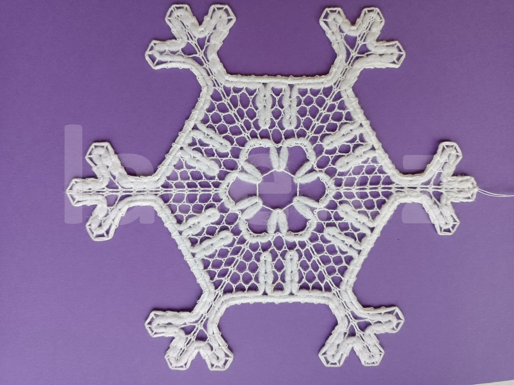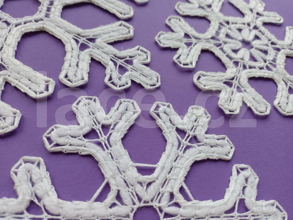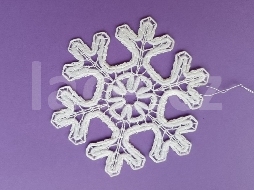Soubor 12 podvinků pro paličkování sněhových vloček technikou vláčkové krajky. Velikost od 9,7 do 15,5 cm. Jsou upaličkované ze stejných nití jako předchozí řady Ledových krystalů, Ledových krystalů 2, Ledových květů a Minikrystalů, které hezky doplňují a rozšiřují, jak na stromečku, tak i v oknech apod.